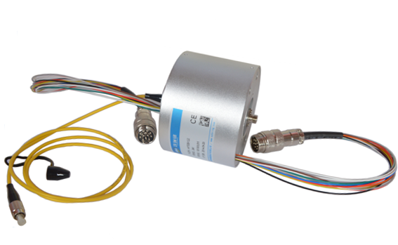 電滑環(huán),在所有滑環(huán)系列中使用最廣泛,也稱電刷、碳刷、集電環(huán)、集流環(huán)、匯流環(huán)、旋通、旋轉(zhuǎn)電氣關(guān)節(jié),專用于在無(wú)限制連續(xù)旋轉(zhuǎn)時(shí),傳輸功率電源、信號(hào)電源。定子與轉(zhuǎn)子部分分別引出導(dǎo)線連接固定結(jié)構(gòu)與旋轉(zhuǎn)結(jié)構(gòu)的電源與終端電器,并隨之旋轉(zhuǎn)。根據(jù)其整體結(jié)構(gòu)的不同,分為實(shí)圓滑環(huán)(在旋轉(zhuǎn)體上挖一個(gè)孔,安裝滑環(huán)),(如圖),空?qǐng)A滑環(huán)(將滑環(huán)安裝在旋轉(zhuǎn)軸上)(如圖),以及分離滑環(huán)、扁盤滑環(huán)、水銀滑環(huán)、特型滑環(huán)等等。
